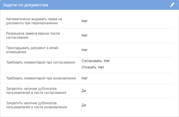 Нет– документ не будет приложен к email-оповещению о назначении задачи документооборота и об изменениях в задаче.