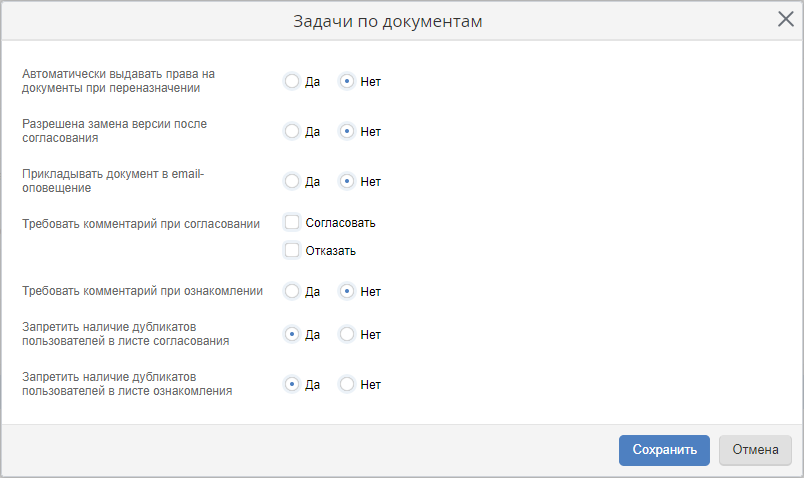 Да– при переназначении задачи по документу пользователю, на которого переназначается задача, автоматически выдаются те же права, что были у предыдущего исполнителя задачи по документу;