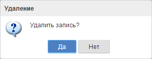 Для удаления элемента справочника необходимо нажать кнопку напротив названия элемента. Отобразится окно подтверждения удаления (рис.2). Для завершения процедуры удаления необходимо нажать кнопку Да. Для отмены операции удаления необходимо нажать кнопку Нет.