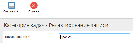 Для сохранения изменений необходимо нажать кнопку Сохранить в карточке элемента справочника Категория задач (рис. 3). Для отмены изменений необходимо нажать кнопку Отмена.