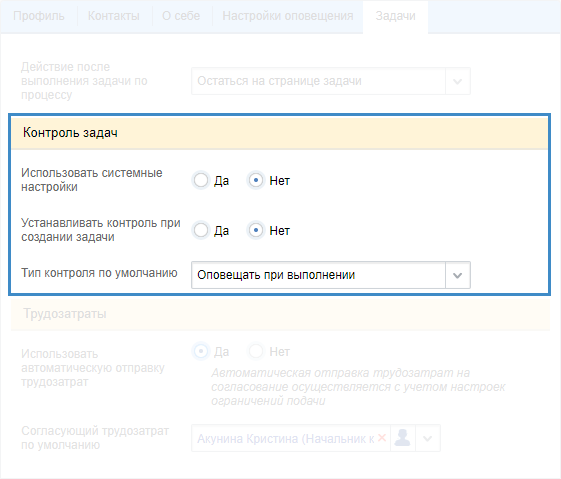 Контроль задач (рис. 5), в котором пользователи могут переопределить системные настройки контроля задач;