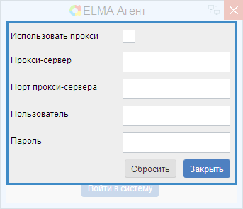 Также при запуске программы ELMA Агент можно использовать прокси-сервер. По умолчанию данная функция отключена.