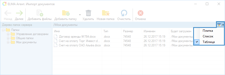 На данном шаге можно удалить выбранный файл, очистить список импортируемых объектов и/или отменить импорт документов, используя кнопки верхней панели инструментов.