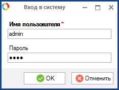 После выбора конфигурации будет открыто диалоговое окно авторизации (рис. 2), в котором необходимо ввести учетные данные пользователя системы ELMA и нажать на кнопку ОК.