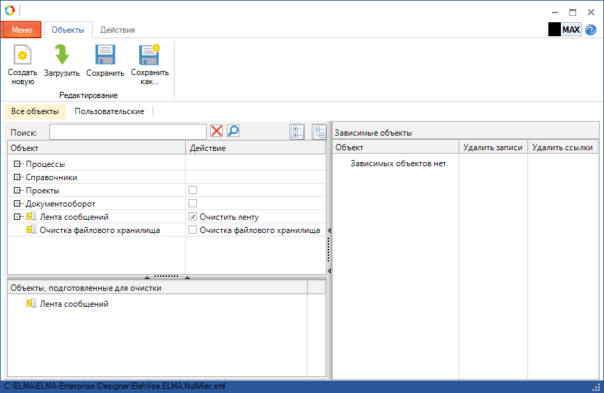 Рис. 3. Приложение "Управление конфигурациями". Вкладка "Объекты"