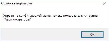 Запуск приложения "Управление конфигурациями" доступен только пользователям, входящим в