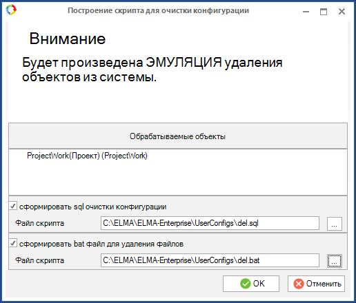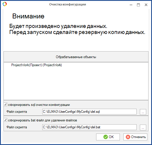 Рис. 3. Окно "Построение скрипта для очистки конфигурации"