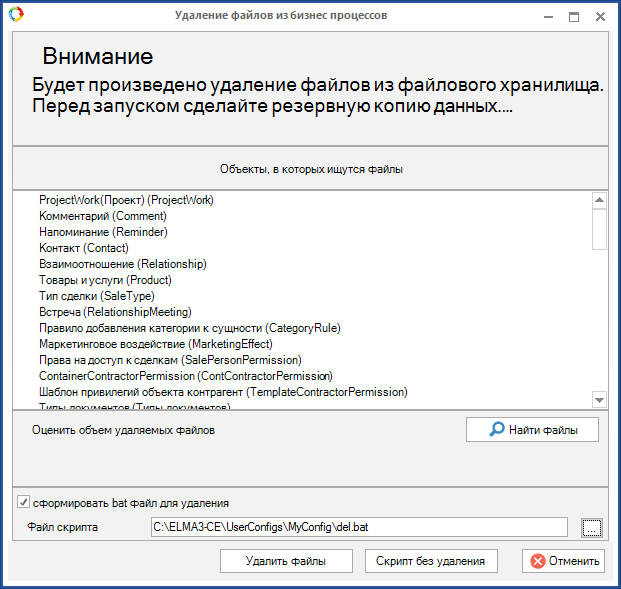 Необходимо отметить, что кнопка Скрипт без удаления активна только в том случае, когда установлен флажок сформировать bat файл для удаления.