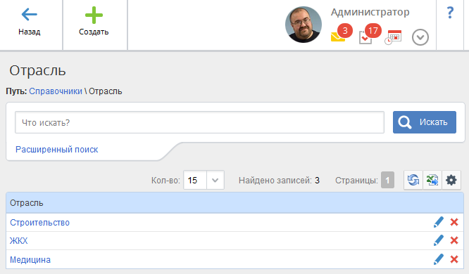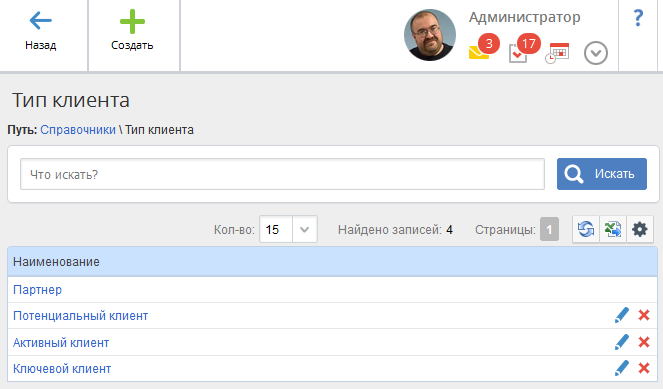 Справочники для работы с клиентами обеспечивают быструю и удобную работу пользователя с разделом Работа с клиентами. Данные справочники преимущественно используются при создании и/или редактировании контрагентов, контактов, возможностей и др..