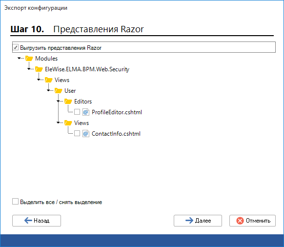 На данном шаге (рис. 18) необходимо выбрать Razor-формы, которые необходимо экспортировать.