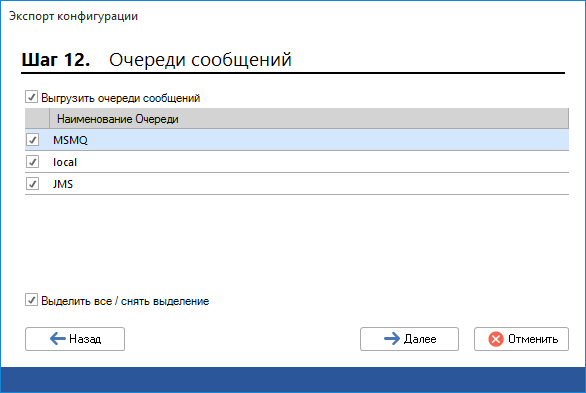 На данном шаге (рис. 20) необходимо указать очереди сообщений, которые необходимо экспортировать.