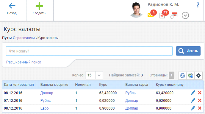 Рис. 7. Форма создания справочника "Курсы валюты"