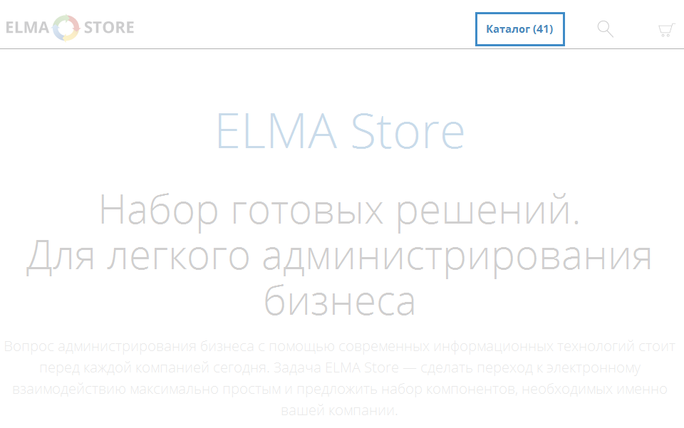 Для входа в магазин ELMA Store необходимо в веб-браузере открыть страницу https://store.elma-bpm.ru/ и в верхней части страницы нажать на кнопку Каталог (рис. 1).