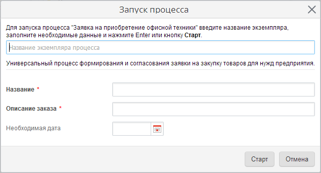 Рис. 3. Стартовое окне запуска процесса в веб-приложении. Простая форма