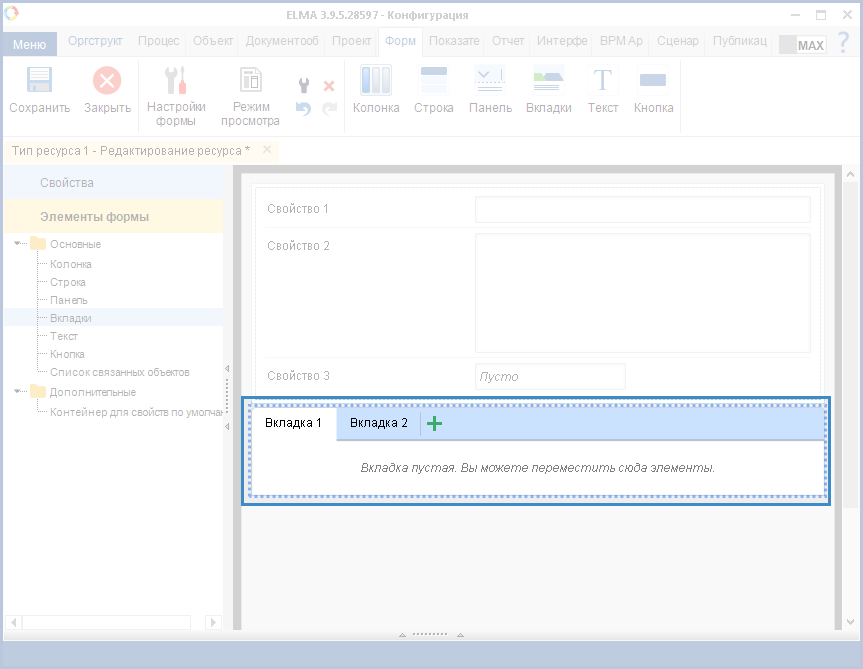 Каждый элемент в Дизайнере ELMA может быть удален с формы. Для этого необходимо выделить требуемый элемент и выполнить одно из следующих действий: