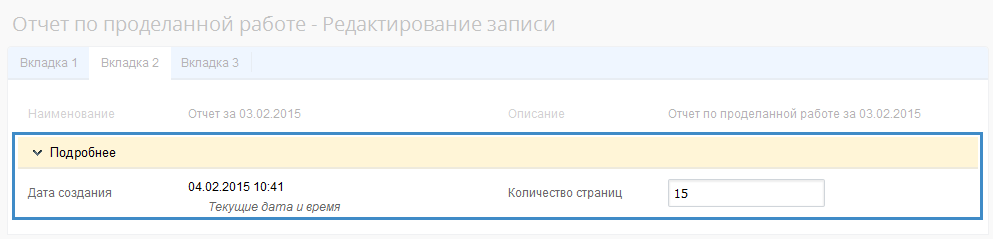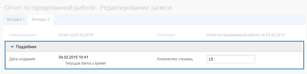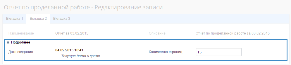 Рис. 4. Форма редактирования объекта в веб-приложении. Несворачиваемая панель на форме