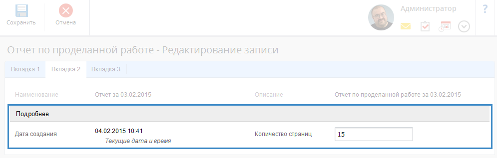 Рис. 6. Форма редактирования объекта в веб-приложении. Стиль панели "Серый разделитель"