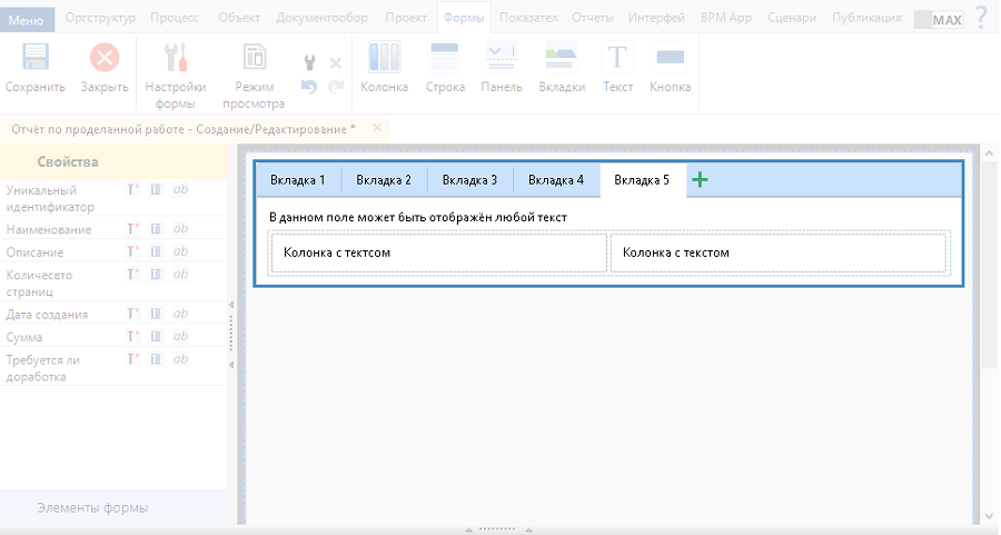 На рис. 1 и 4 приведены примеры отображения текста на форме редактирования в Дизайнере ELMA и в веб-приложении.