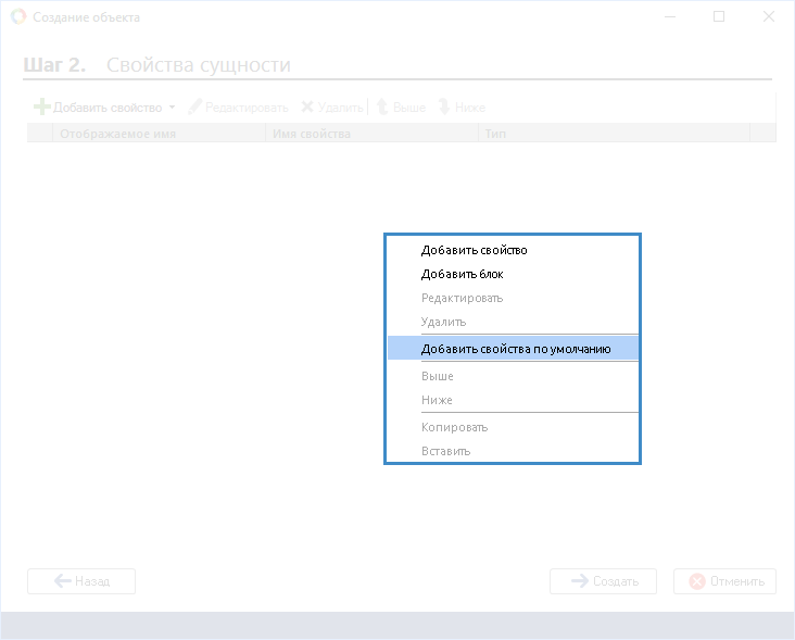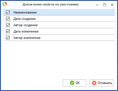 Рис. 3. Диалоговое окно добавления свойств по умолчанию
