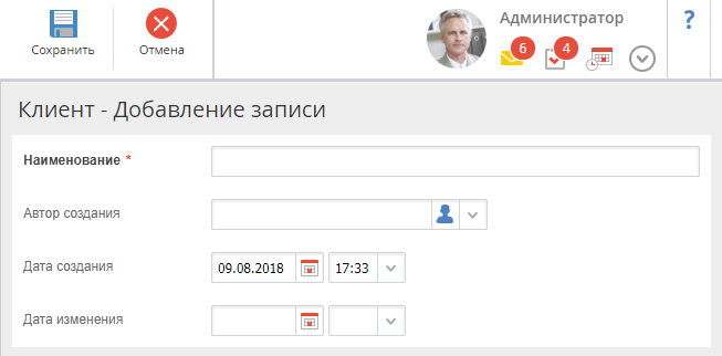 Обратите внимание, что для свойства Дата создания по умолчанию устанавливается текущая дата.