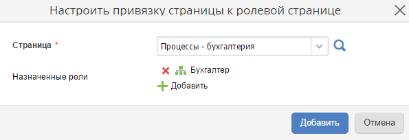 Страница * – из выпадающего списка следует выбрать необходимую страницу, которая будет привязана к ролевой странице. Для поиска страницы следует воспользоваться кнопкой