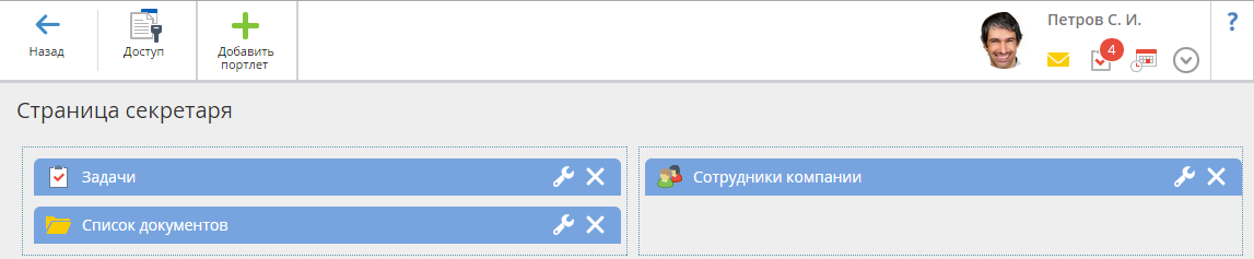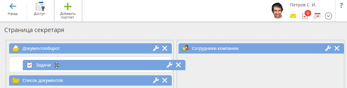 , расположенную справа от названия портлета. Подробнее о настройке портлетов см. соответствующую страницу справки.