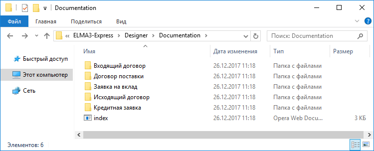 Рис. 3. Директория с документацией по процессу в проводнике Windows.