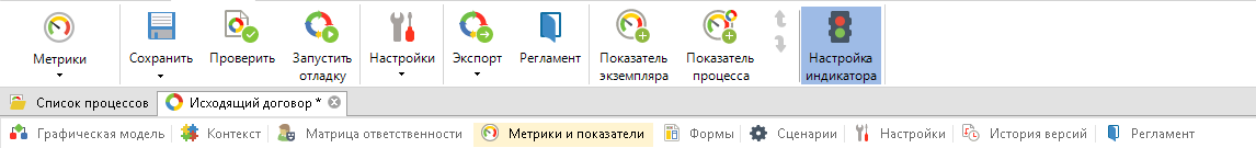 Для создания индикатора на верхней панели инструментов карточки процесса необходимо нажать кнопку Настройка индикатора (рис. 1).