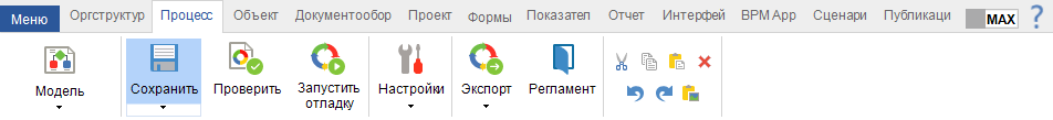 Рис. 1. Кнопка "Сохранить" на панели инструментов процесса