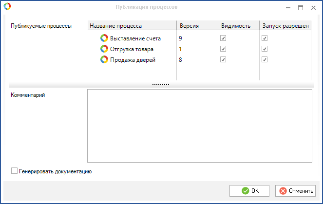 Рис. 6. Диалоговое окно групповой публикации процессов.