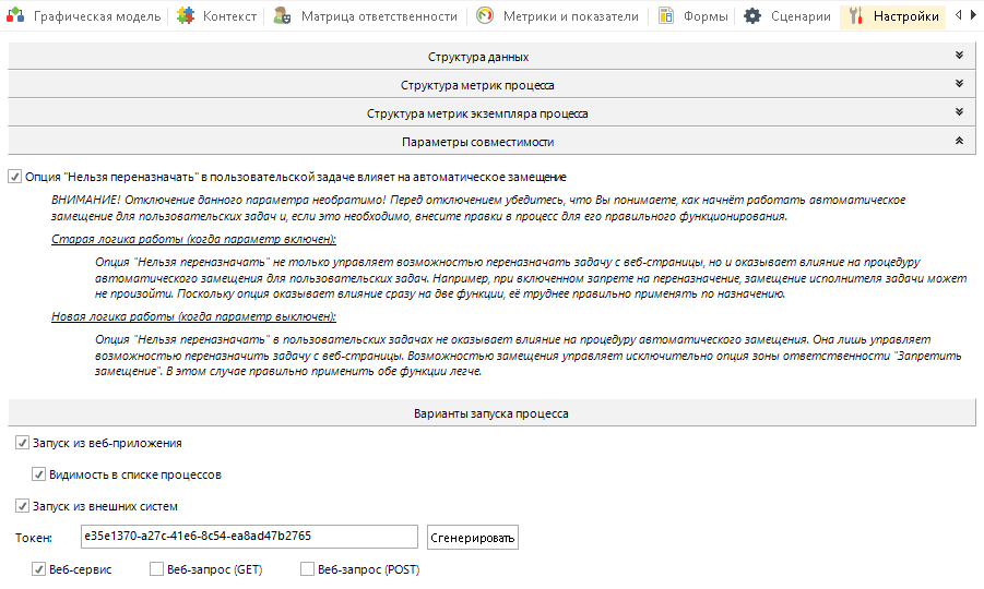 Запуск из веб-приложения – при установке данного флажка экземпляры процесса могут быть запущены пользователем вручную в веб-приложении;