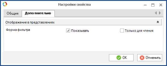 Данная вкладка состоит из блока Отображение в представлениях (рис. 2) с полем Форма фильтра: