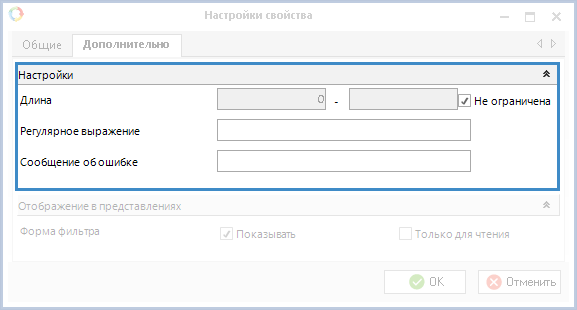 Рис. 3. Пример блока "Настройки" для параметра типа "Строка"