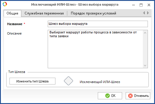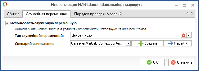 Вкладка "Служебная переменная" - доступна для исключающего и неисключающего ИЛИ-шлюзов, при наличии двух и более исходящих переходов;