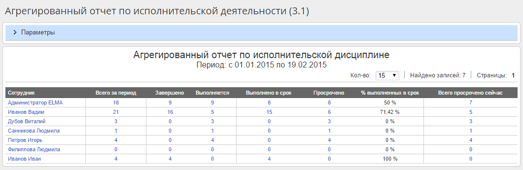 Рис. 1. Веб-приложение. Агрегированный отчет по исполнительской деятельности