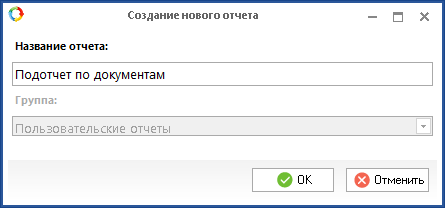 В открывшемся диалогом окне (рис. 5) необходимо ввести название создаваемого подотчета и нажать на кнопку ОК.