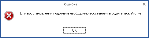 В открывшемся диалоговом окне необходимо нажать на кнопку ОК. При восстановлении родительского отчета автоматически будет восстановлен подотчет.