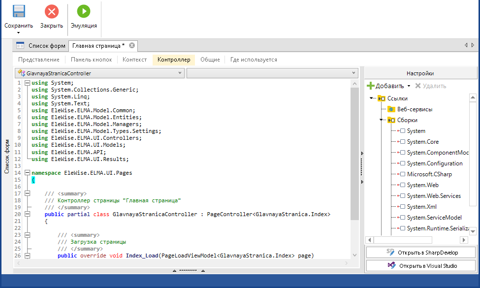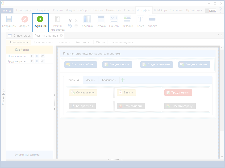 Эмуляция страницы запускается из Дизайнера ELMA (рис. 14), а выполняется в веб-приложении (рис. 15).