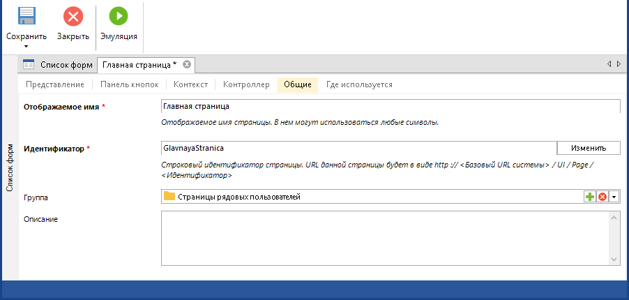 Рис. 10. Карточка страницы. Вкладка "Контроллер"