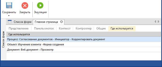 Рис. 12. Карточка страницы. Вкладка "Где используется"