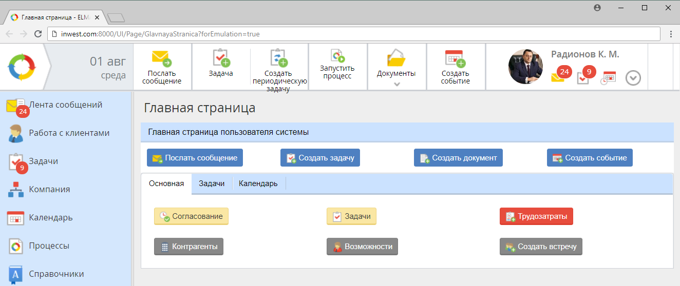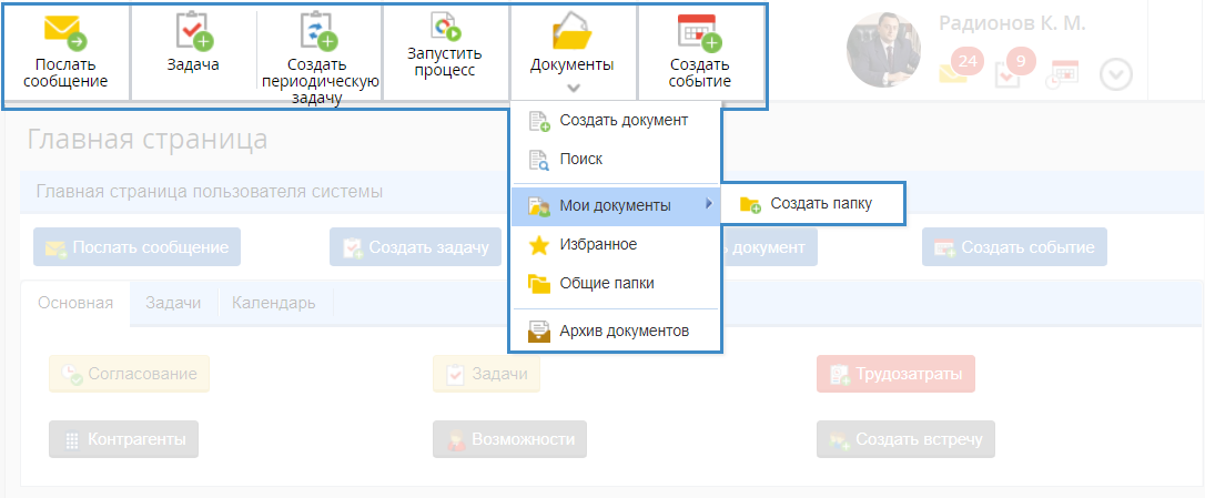 Пример отображения в веб-приложении настроенного верхнего меню представлен на рис. 8: