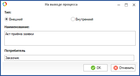 Выход - это информация, документы и материально-технические ресурсы, которые исполнитель должен создать в рамках выполнения текущей задачи.