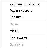 Пункты контекстного меню Выше и Ниже позволяют изменить позицию элемента в списке свойств для более удобного восприятия и поиска элементов.