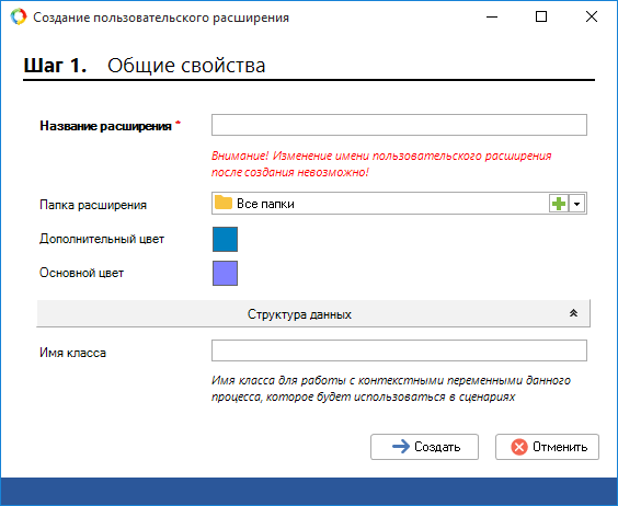 Чтобы создать расширение, необходимо нажать кнопку Добавить на панели инструментов или выбрать пункт Создать пользовательское расширение в контекстном меню списка пользовательских расширений (рис. 1).