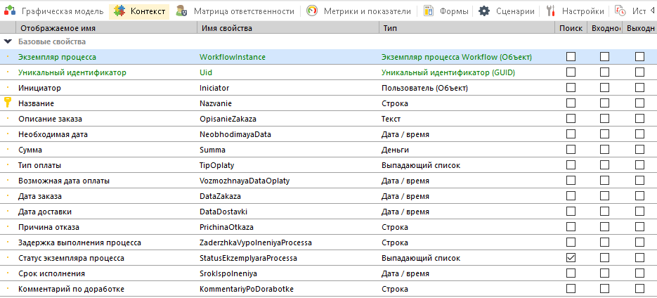 Ключевая переменная в контексте процесса может быть только одна. В списке переменных она обозначена значком . Ключевая переменная может быть только типа "Строка".