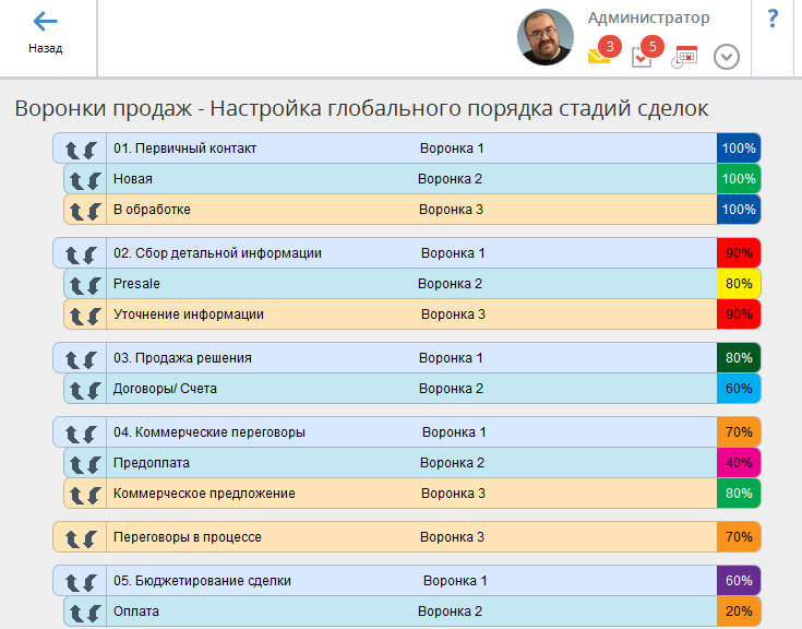 Рис. 6. Страница настройки глобального порядка стадий сделок