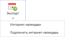 При нажатии на кнопку Экспорт отобразится всплывающее окно, позволяющее произвести экспорт календаря в файл формата iCalendar (.ics).