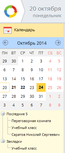 Быстрый переход к требуемому календарю из списка "Последние 5" или "Закладки" может быть осуществлен путем нажатия кнопкой мыши на название календаря в одном из списков.