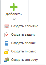 При нажатии на кнопку Добавить или на пиктограмму появляется выпадающее меню, которое предлагает: