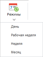 При нажатии на кнопку Режимы или на пиктограмму появляется выпадающее меню, которое предлагает выбрать необходимый режим просмотра календаря:
